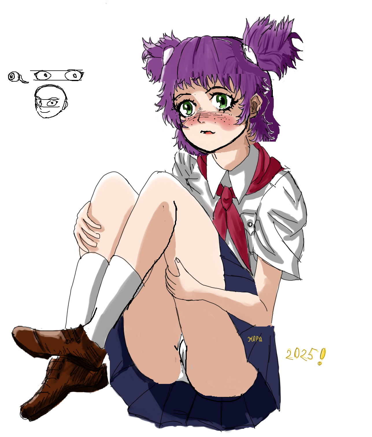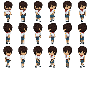 С одной стороны, анимированные персы пока не нужны, а с другой, почему бы их уже и не сделать, да? Предлагаю пока не сильно вкладываться в визуал, все равно что-то переделывать и перерисовывать придется. Ну, если уж хочешь помочь, то можешь править мои косяки, нарисовать Семена в пальто, Семена в домашней одежде и т.п. А из пионерок лучше начать со Слави, а дальше уж как сам захочешь. Убедительная просьба делать анимки разложенными на кадры. Пример (шаблон) я прилагаю.