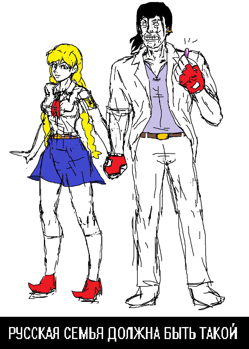 >>1245347 да защищает он ее, блять! Трубой водопроводной! Че под рукой было, тем и защищает! да и типа пионерка не определена, потому на голове и прическа с одной стороны такая, с другой такая, и на лице знак вопроса!!