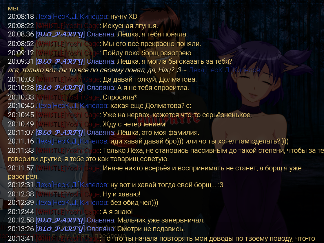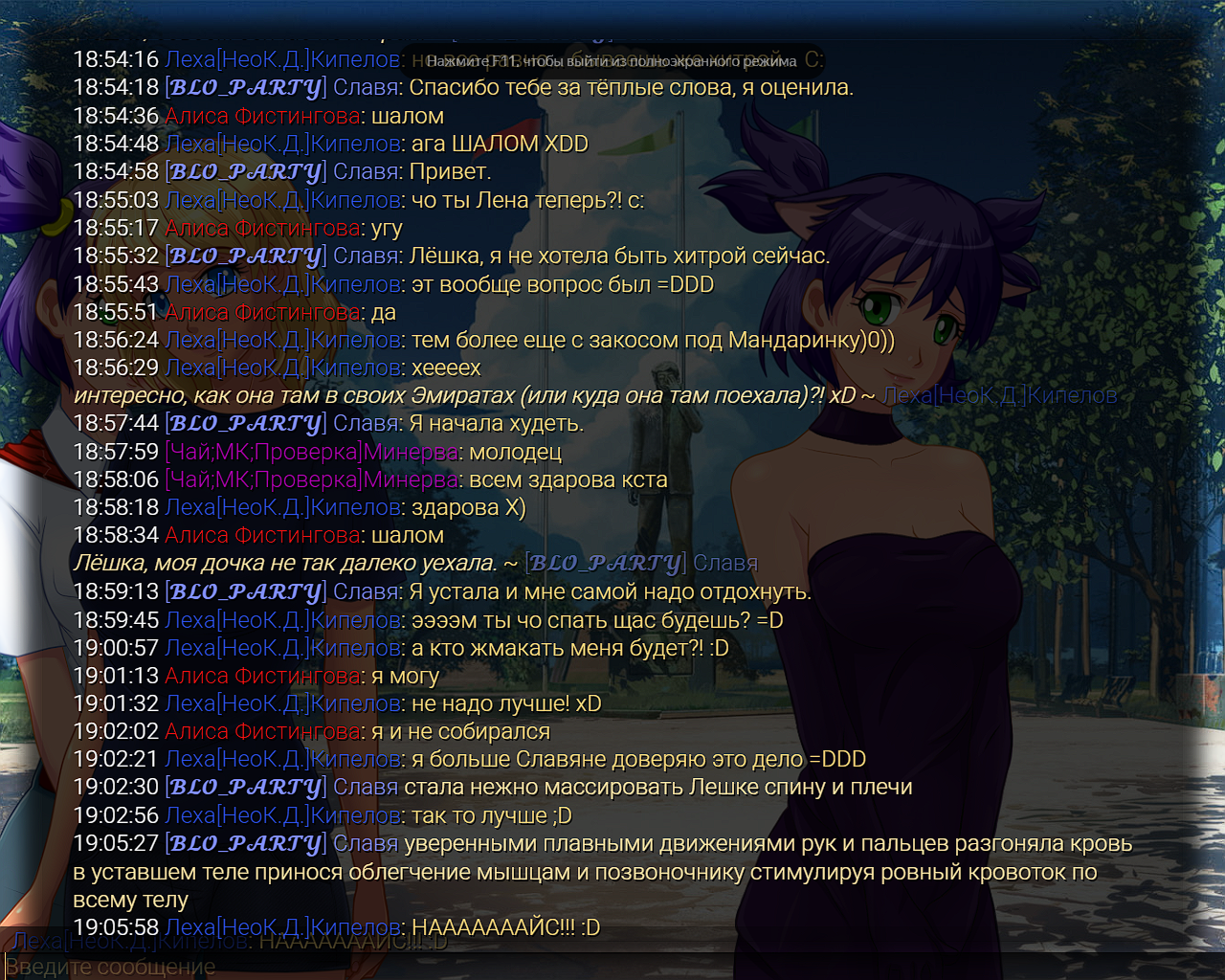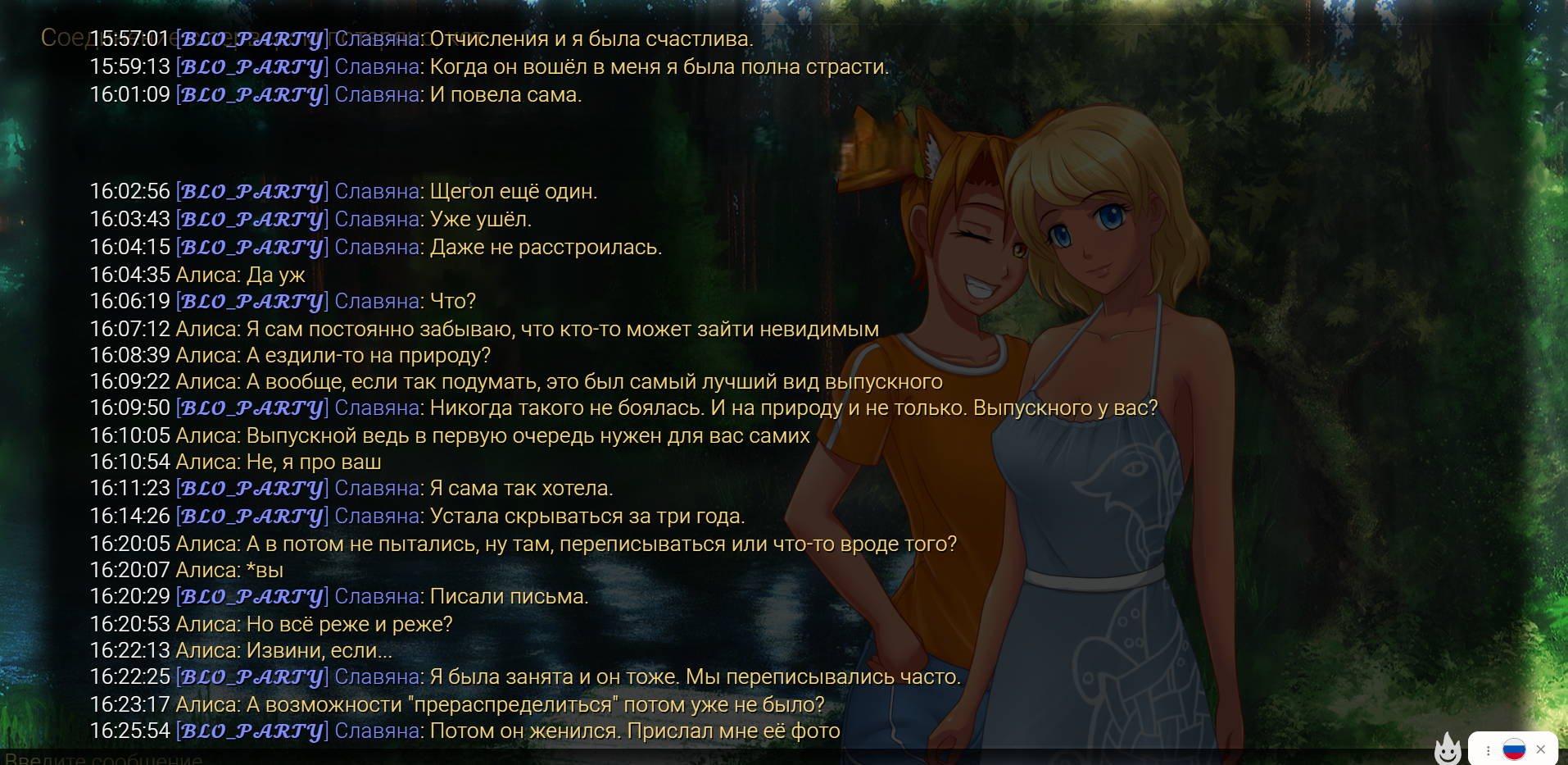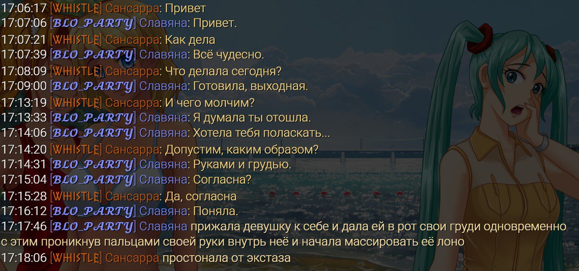 Старина Бо Синн (а это, конечно же, был он) развернул такое описание, что текстовый чат загорелся красным. Каждое слово проникало в душу, каждое движение героев описывалось с мастерством романиста. Кто-то скромно покидал комнату, не выдержав натиска эротических метафор. Другие записывали это в цитатники. Кульминация