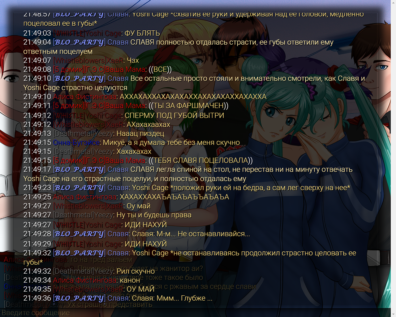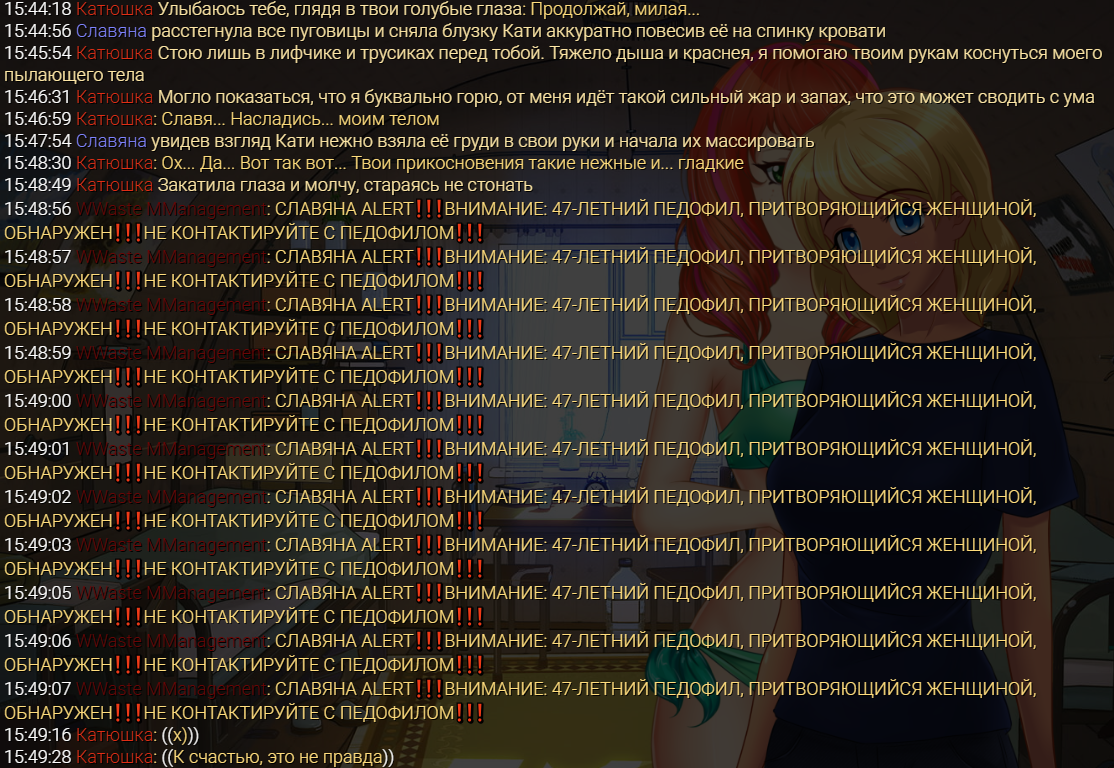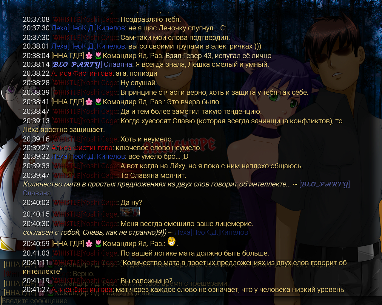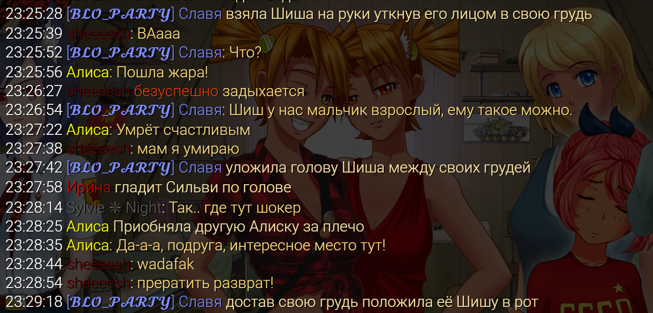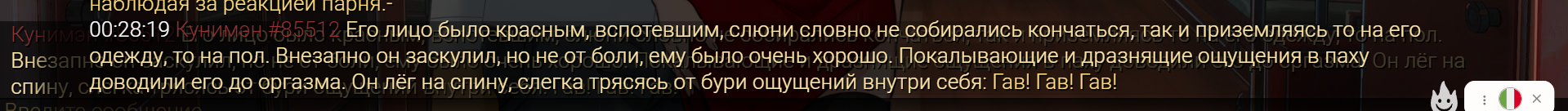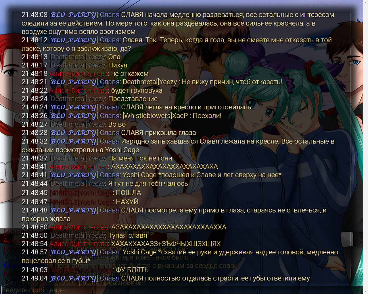 Старина Бо Синн (а это, конечно же, был он) развернул такое описание, что текстовый чат загорелся красным. Каждое слово проникало в душу, каждое движение героев описывалось с мастерством романиста. Кто-то скромно покидал комнату, не выдержав натиска эротических метафор. Другие записывали это в цитатники. Кульминация
