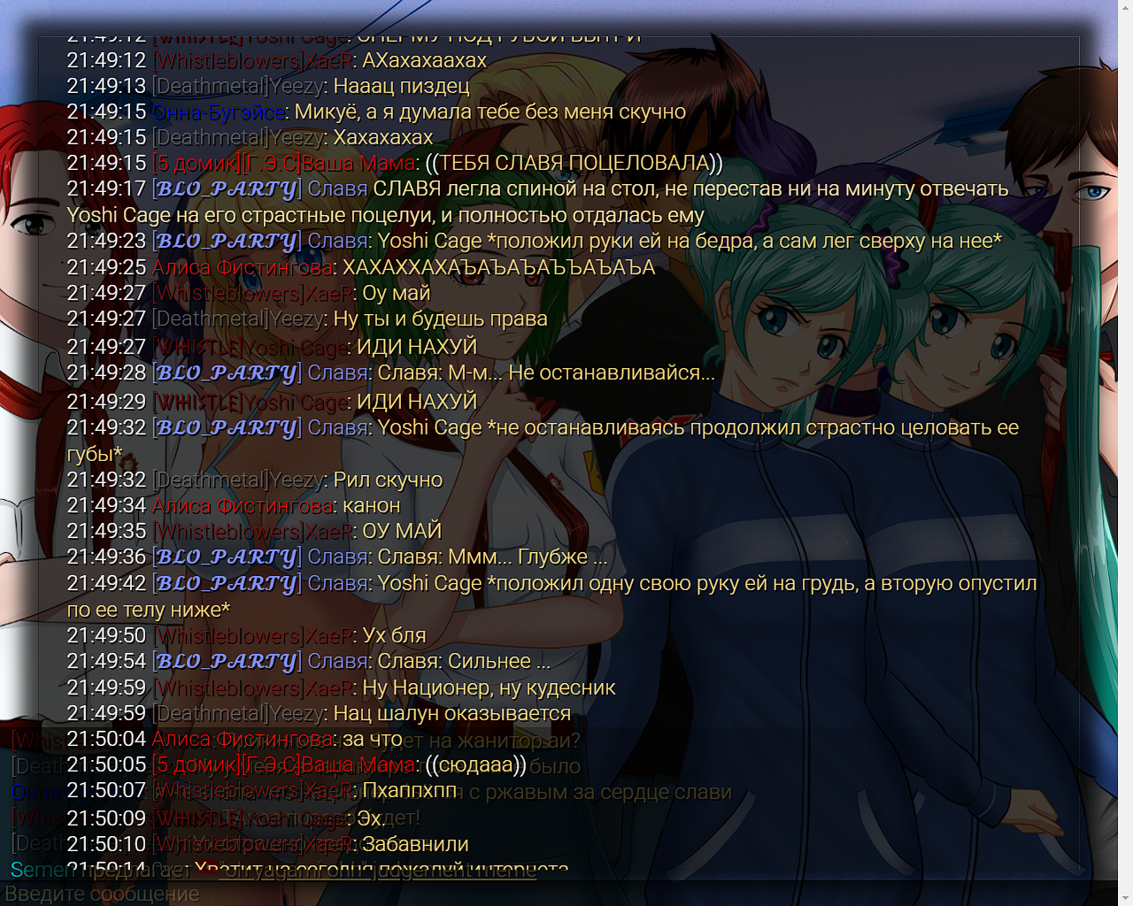 Когда накал страстей достиг максимума, админы не выдержали. Врывается вожатый: — Эй! Это же ПИОНЕРЛАГЕРЬ! Что вы творите?!