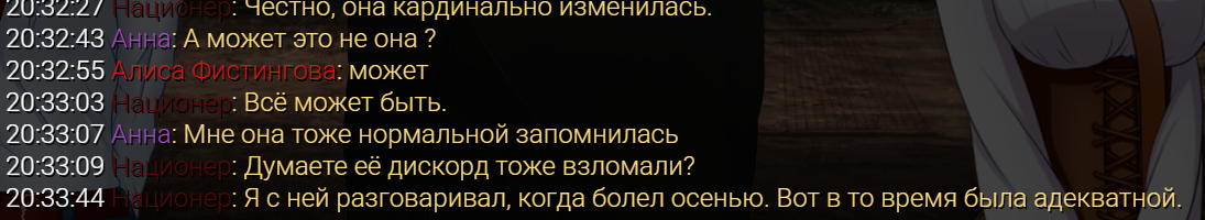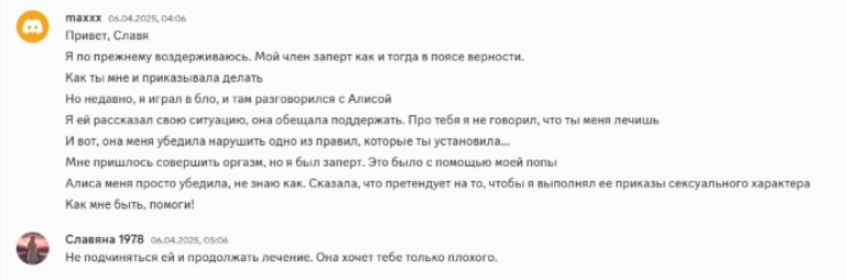 Инфа тревожная. Аноны пишут, что «она» изменилась. Местные говорят о психозах, внезапных обрывах контактов и тотальной усталости. Не удивлюсь, если через пару страниц выяснится, что она теперь выступает на арене с гориллами.