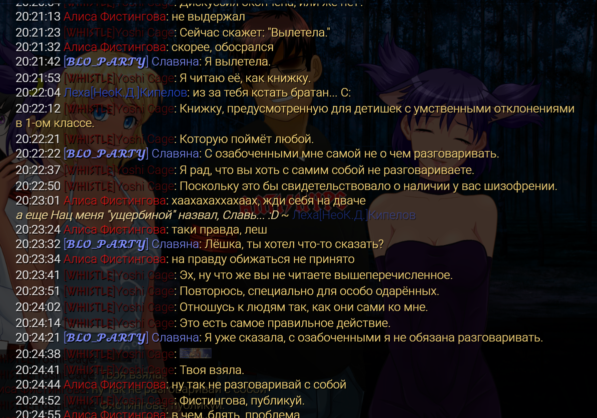 И почему ты ливнула? Два исхода 1. Ты не твинк арсы. Зачем тебе в таком случае ливать? Могла бы услышать всю правду из первых уст 2. Ты арса и правило игнора до сих пор держится, поэтому тут же ливнула. Но зачем так бессмысленно палиться?