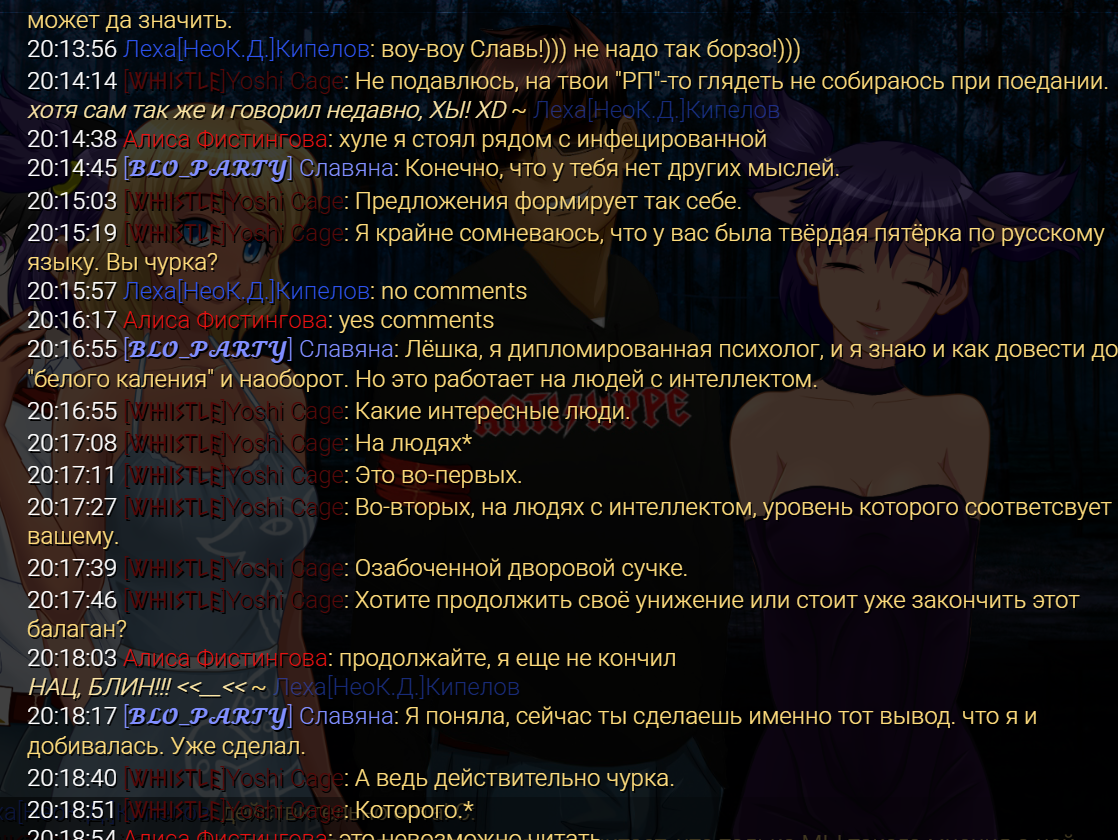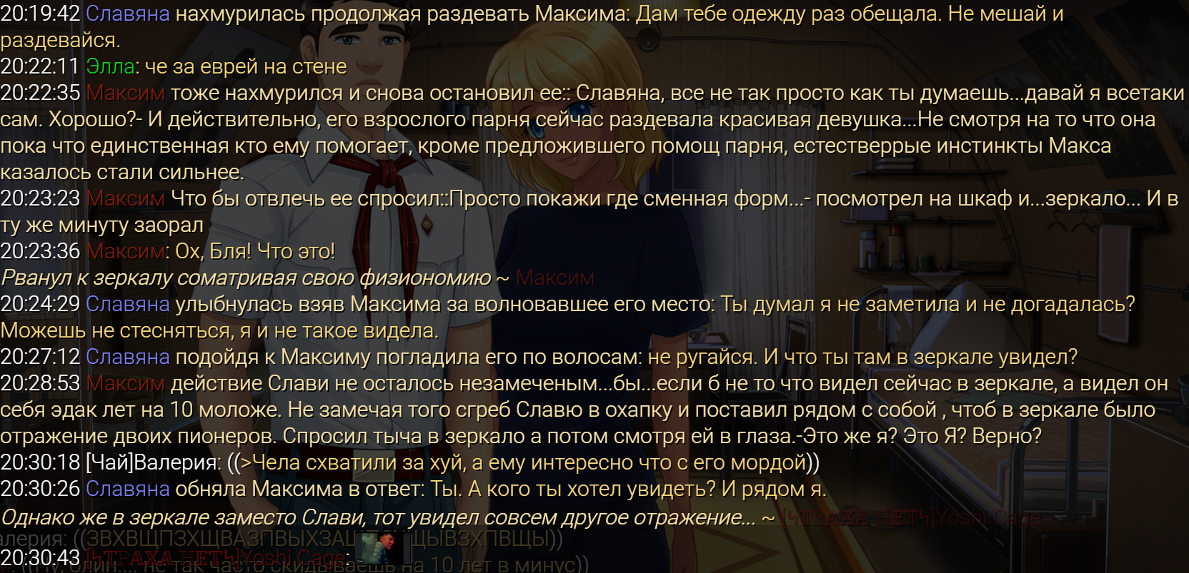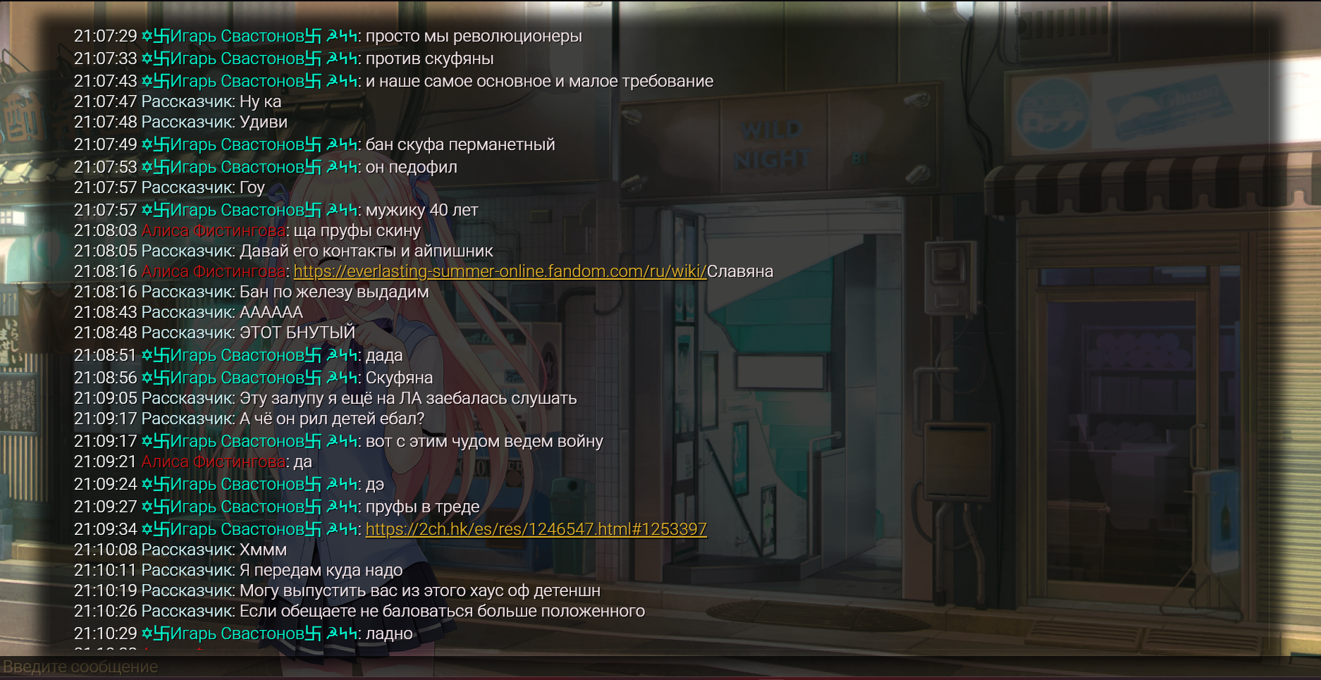 Пауза. Все замерли. вожатый прочитал несколько строк… И тихо вышел из чата.