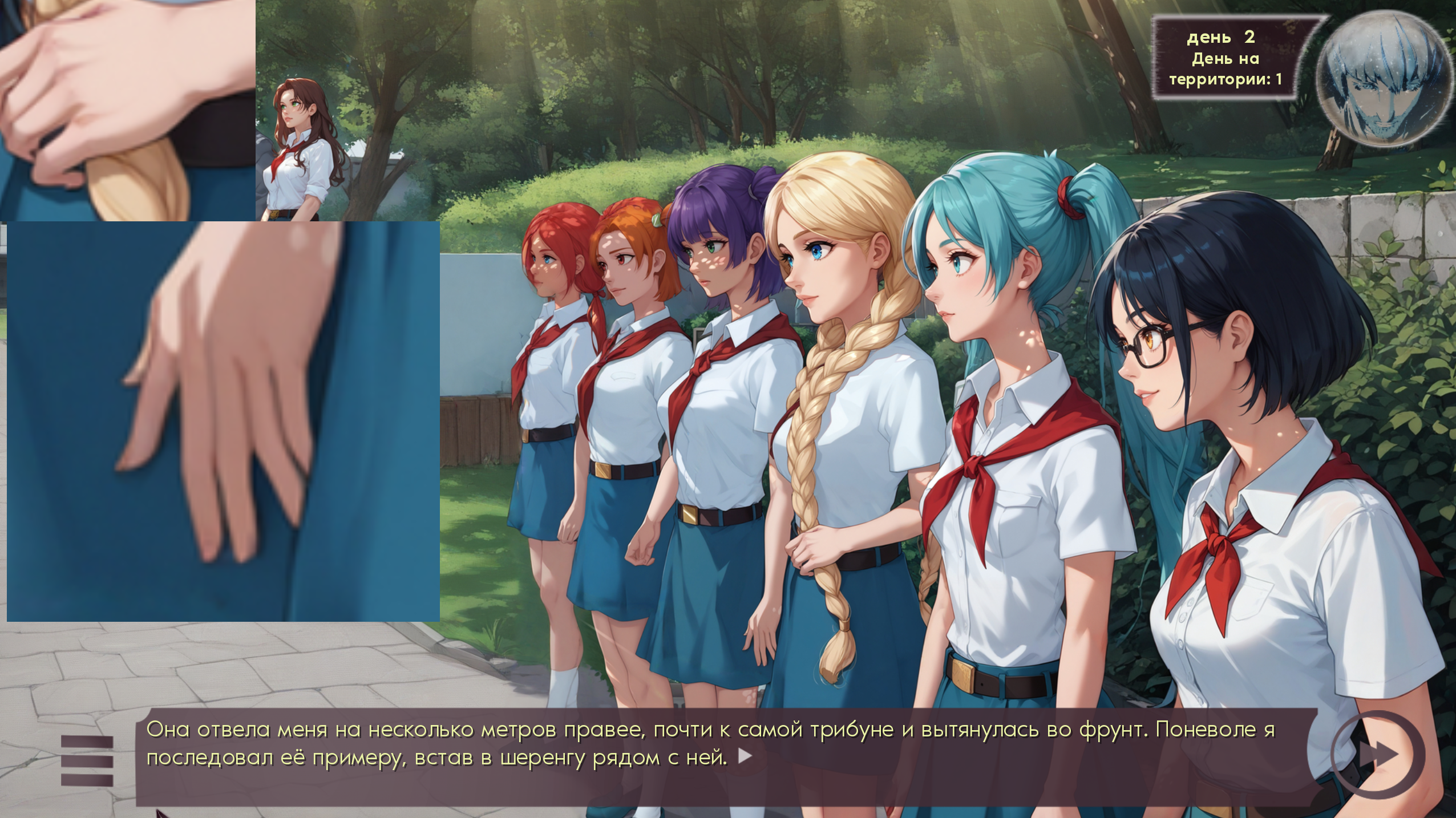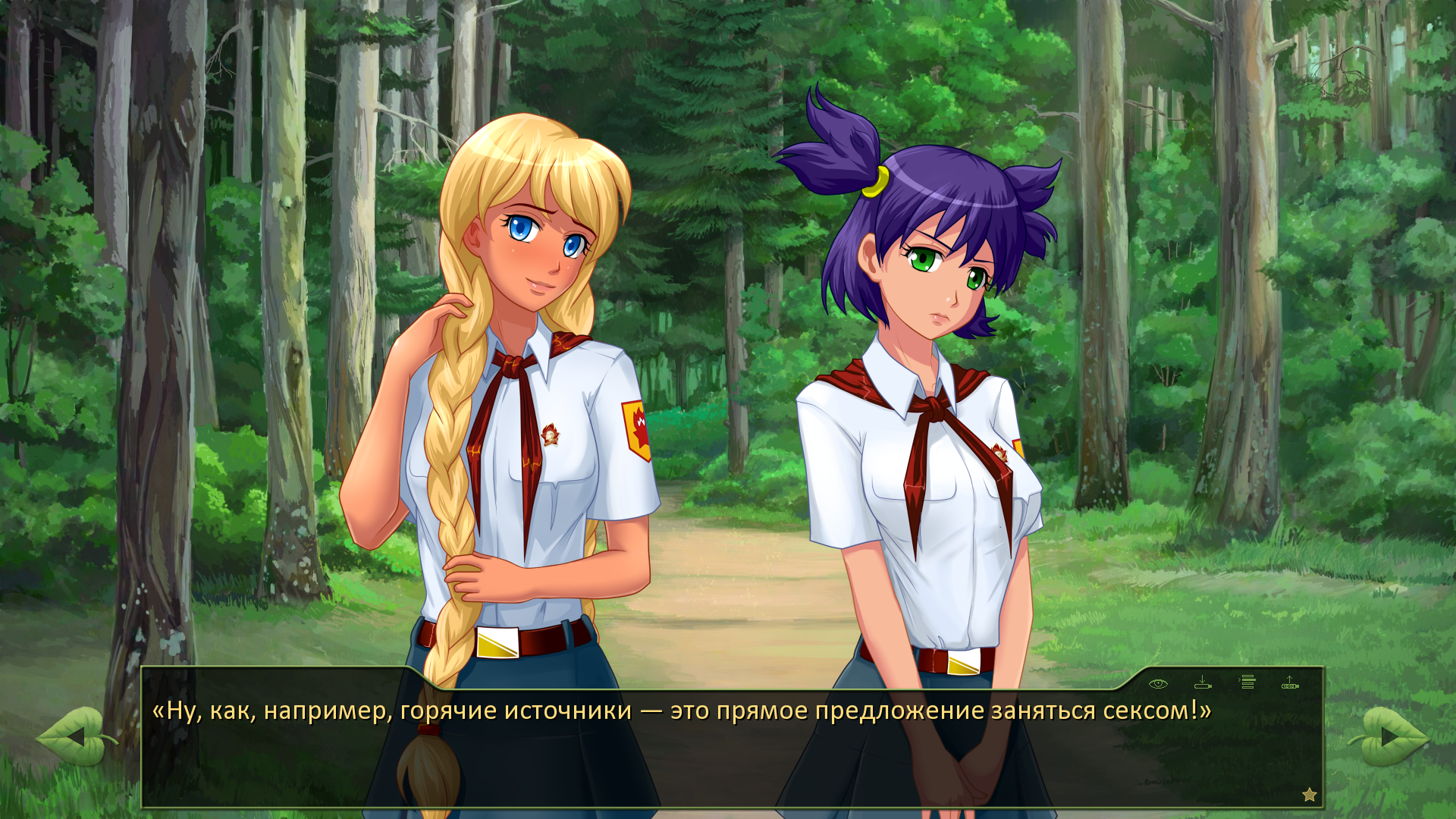Эй, Амбалы, почему тут нет выбора полапать Лену? Можно сделать после этого катапульту с линчеванием Семёна всеми пионерами прям в столовой! Такая то октябрёнокская феминистическая мораль будет, все додевяточники точно будут знать, что пионерок лапать нельзя!
