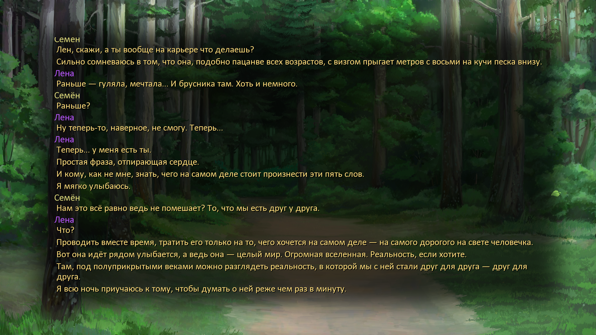 попробую доиграть нормально финальный рут (три штуки походу) и перепройти Лену (пидор оскорбляет её прям обидно ппц), Ольгу и Славю, раз вы так советуете настойчиво:)