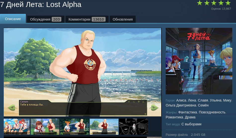Тред самого крупного мода для Бесконечного Лета. С 2019-го есть две версии: в мастерской Стима от энтузиастов (Lost Alpha) и авторская от 7дл-куна. Новичку начинать со стимовской Лост Альфы, именно её обсуждают в треде.