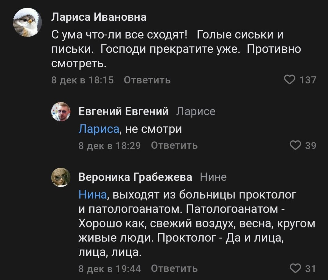 И после таких диалогов и ее постоянного флирта с ним, укладывания руки ему на плечо, стоя рядом и прочего она пизданула мне что у них "чисто дружеские отношения", а пошлости это "фу, гадость" и вообще как-то ненормально. Она меня за совсем еблана держала? Тварь двуличная.