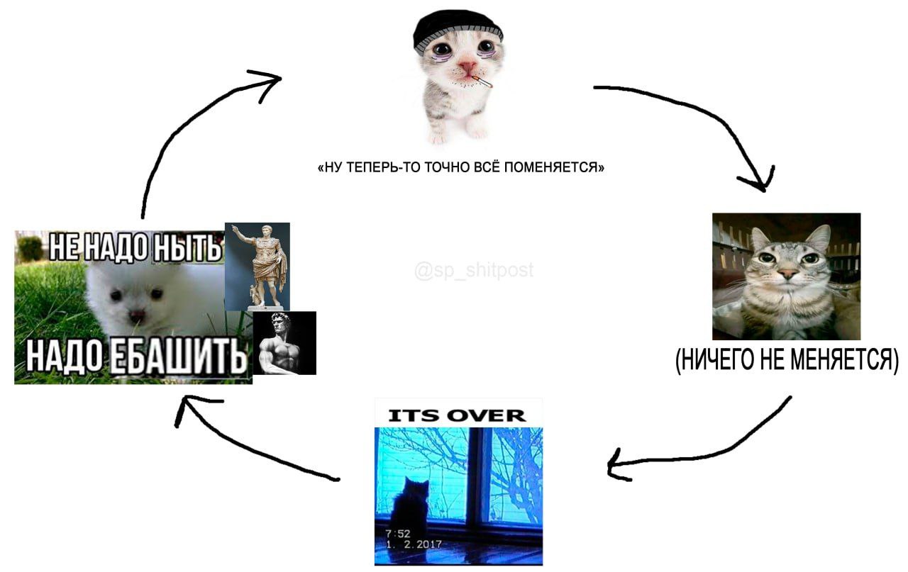 >>1257276 > тебя остается надежда, даже если уже ясно, что время ушло, возможность прошла. Некая незримая надежда есть Ну с одной стороны надежда это хорошо, а с другой стороны - страдания от неизвестности, выдумывание мотивов ее поступков, охуевание от незнания насколько все серьезно между ней и тем челом и есть ли еще какой-то шанс у тебя самого или же его не было изначально. По-моему проще все же узнать правду и понять, что ты ей нахуй не нужен и плыть дальше по течению или узнать, что она ждала от тебя ответа, тк сама узнать о твоем отношении к ней стеснялась к примеру.