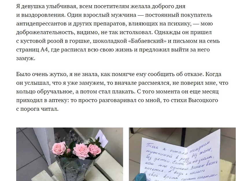 >>1257160 >она вроде его номера не знает Кстати да, он пишет что ему нужно было позвонить по работе ей и она дала ему свой номер вместо номера городского телефона, что у неё в кабинете. А потом пишет, что она могла ждать от него звонка, а он ничего не сделал. Не ясно, звонил ли он в итоге и давал ли свой номер в ответ.