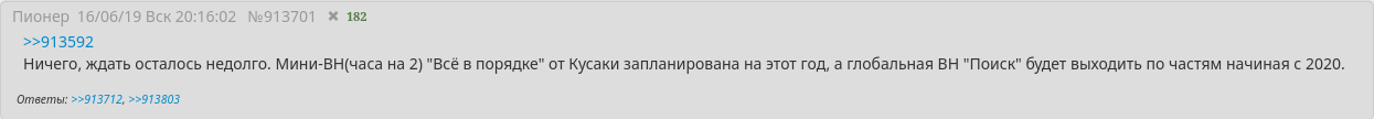 >>1261692 >1 Меня аж флешбекнуло. Помнится, как в далеком 2016 году все ждали, когда же после хиатуса выйдет продолжение. Как раз на этой сцене все и обрывалось. Будто сериал смотришь. Мне было 15 лет, ебаный в рот, как же время несется.
