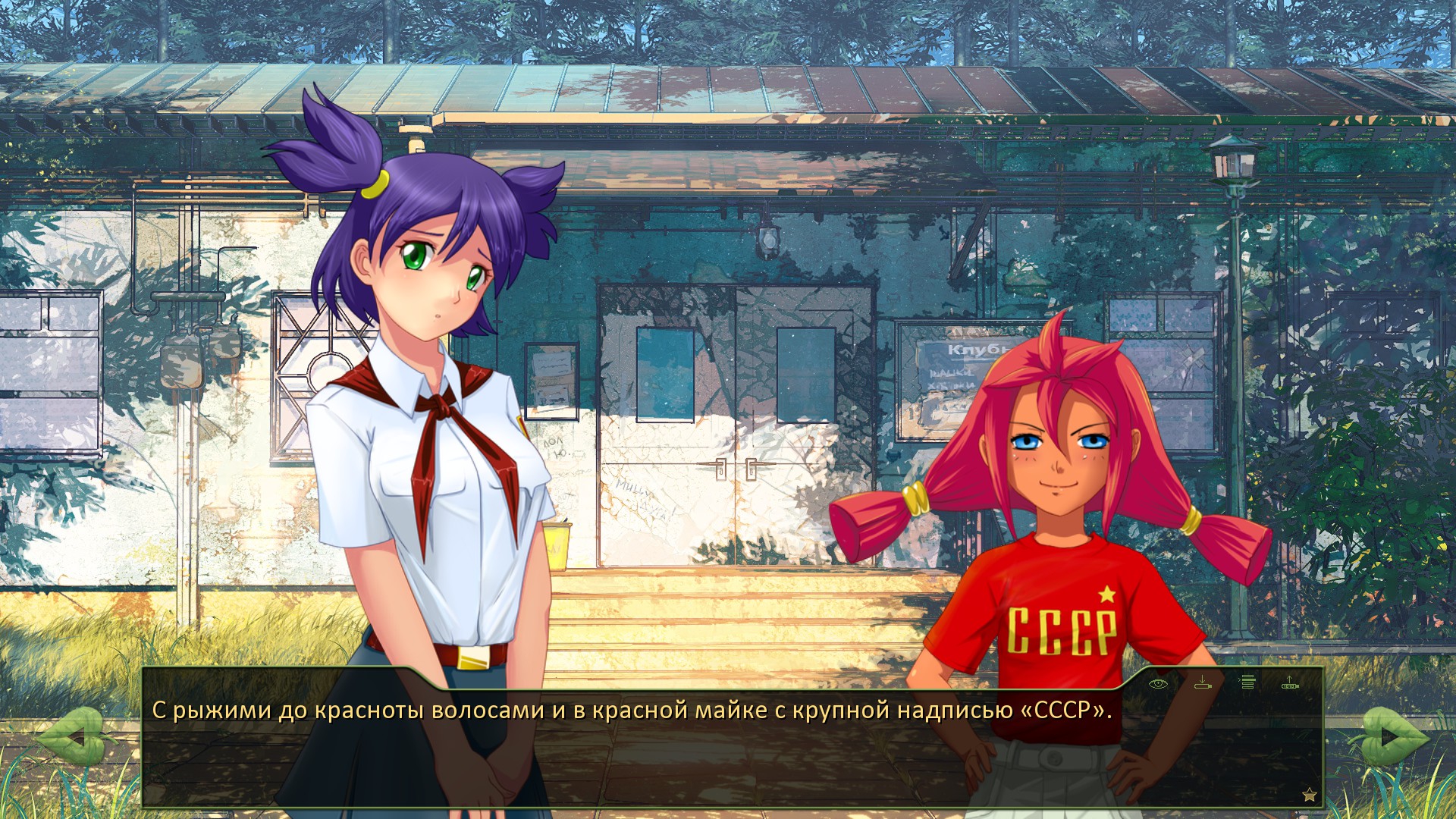 us "На что это мы смотрим?" me "Да так, думаю, что ты довольно симпатичная. {w}Когда не хулиганишь."