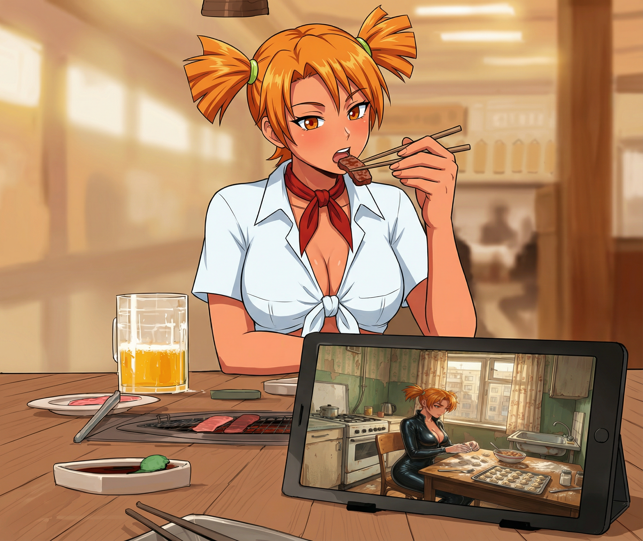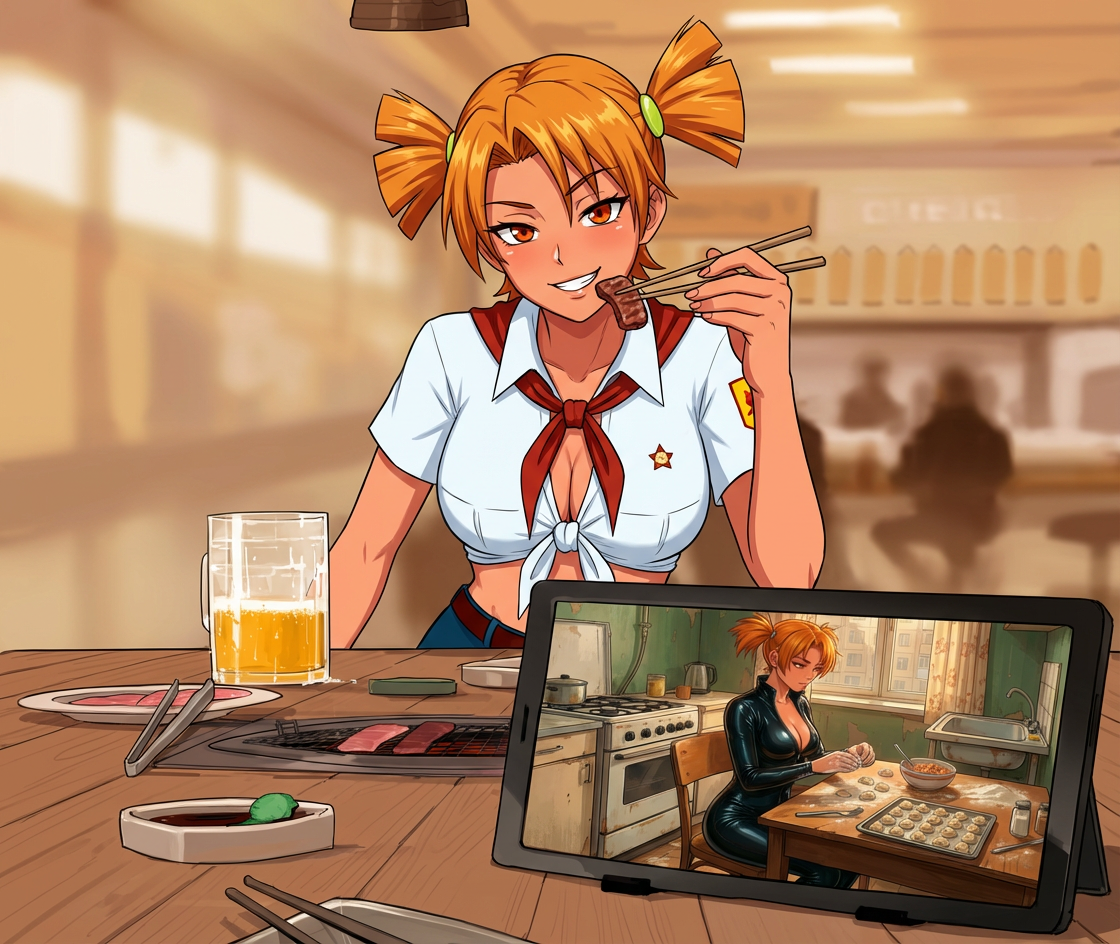 Первый стул, где заведя Бусти все достаточно донатят. Тогда в сценарий идёт вариант с узнаваемыми персонажами, их характерами и перепитиями. Может даже удастся договориться с Риточкой и выпустить игру под эгидой Совиет гейм (как издателя). Но даже если нет, то все получат доступ к игре с любимыми персонажами.
