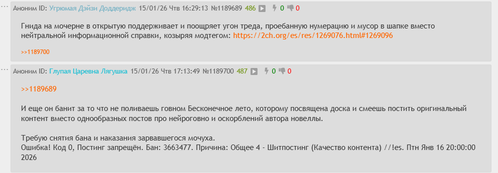 4) Оно угрожало сломать пальцы некоему постеру, рассказывало про свой короткий член и пыталось отмазаться после той политоты, что напиздело