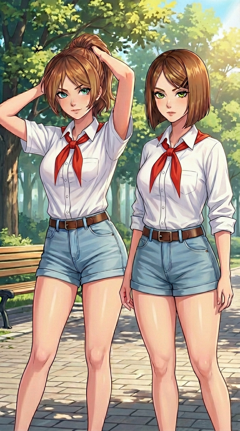>>1270553 Мне кажется, но у этих двух пионерок уже даже архетипы исходя из генерированных картинок начинают вырисовываться! Та что с каре - более стеснительная, скромная, и ведомая. Ну а вторая - своенравная, прямолинейная, и лидер по натуре.
