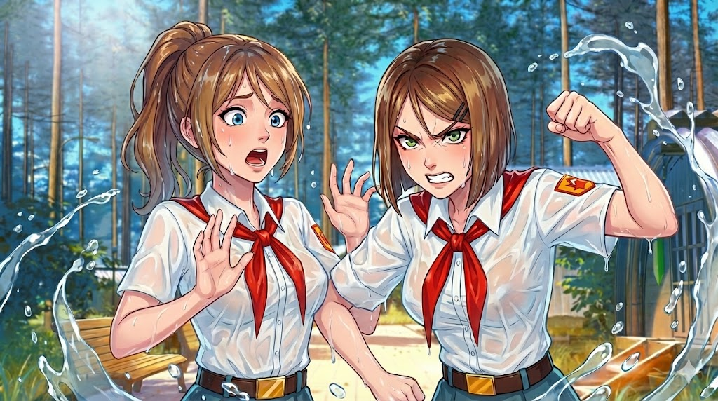 Один из вариантов сцены: Семён просыпается в 4 утра, чтобы пойти на остров и набрать земляники, пока её не растащили другие пионеры. Это единственный варик её достать. Приносить девочкам много ягод, как и обещал. Либо должен за что-то. Об ухаживаниях скорее всего речи нет, т.к. он один их двое, октябрёноковская мораль всё такое. Поэтому просто Семён показывает что держит слово, что может и что хочет. По закону жанра девочка должна сопротивляться, поэтому они типа морозятся. Но не так как вниманиебляди или торгующие вареником "настоящие женщины" а как девочки. по доброму. Тут будут милые диалоги, и анимешное цундерное смущение а-ля "самый лучший спрайт Алисы".
