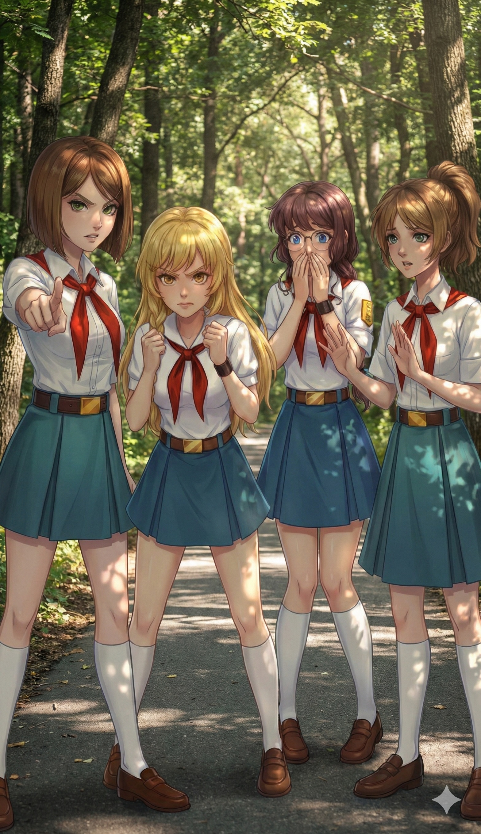 Во время похода происходит трансформация характеров. И то, что они изменились надо закрепить сменой внешнего вида. Кажется интересный ход будет. Не припоминаю такого в модах. Пиджак, использованный в бункере на что-то, уходит, а изодранные длинные юбки сменяются на короткие шорты (ну если это допускается лагерем, судя по Алисе/Ане, которая ходит в шортах то так можно будет). Будет такое небольшое подкрепление их изменению и "превращению" в более полноценные личности. Ну это если Семён не проебётся с выборами и не обосрёт всю малину.