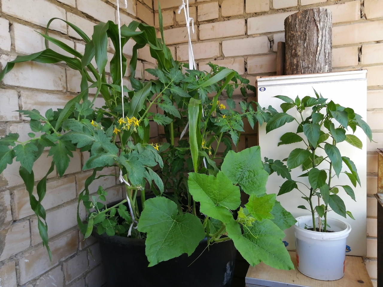 Сап, агрономы, зацените мой миниогородик. В этом году зачесались руки и решил вспомнить детство\отрочество\юность, прожитые в деревне. Конечно, по сравнению с пейзанскими утехами в виде 70 соток одной только картошки это все так, круги на воде, но удовлетворение, когда приходишь с работы, идешь поливать и видишь как кукуруза выпустила метелку или срываешь пару стручков горошка имеется, а это то, ради чего все затевалось. В сумме имею 3 куста томата, 4 стебля карликовой кукурузы, 2 куста гороха, 2 болгарских перца. Кукуруза, горох и два томата растут в тазу на 60л, 2 перца и 1 томат в емкостях на 3 литра, ну и мелочевка, вроде базилика, кинзы, мяты и петрушки в обычных цветочных горшках. Такие дела.