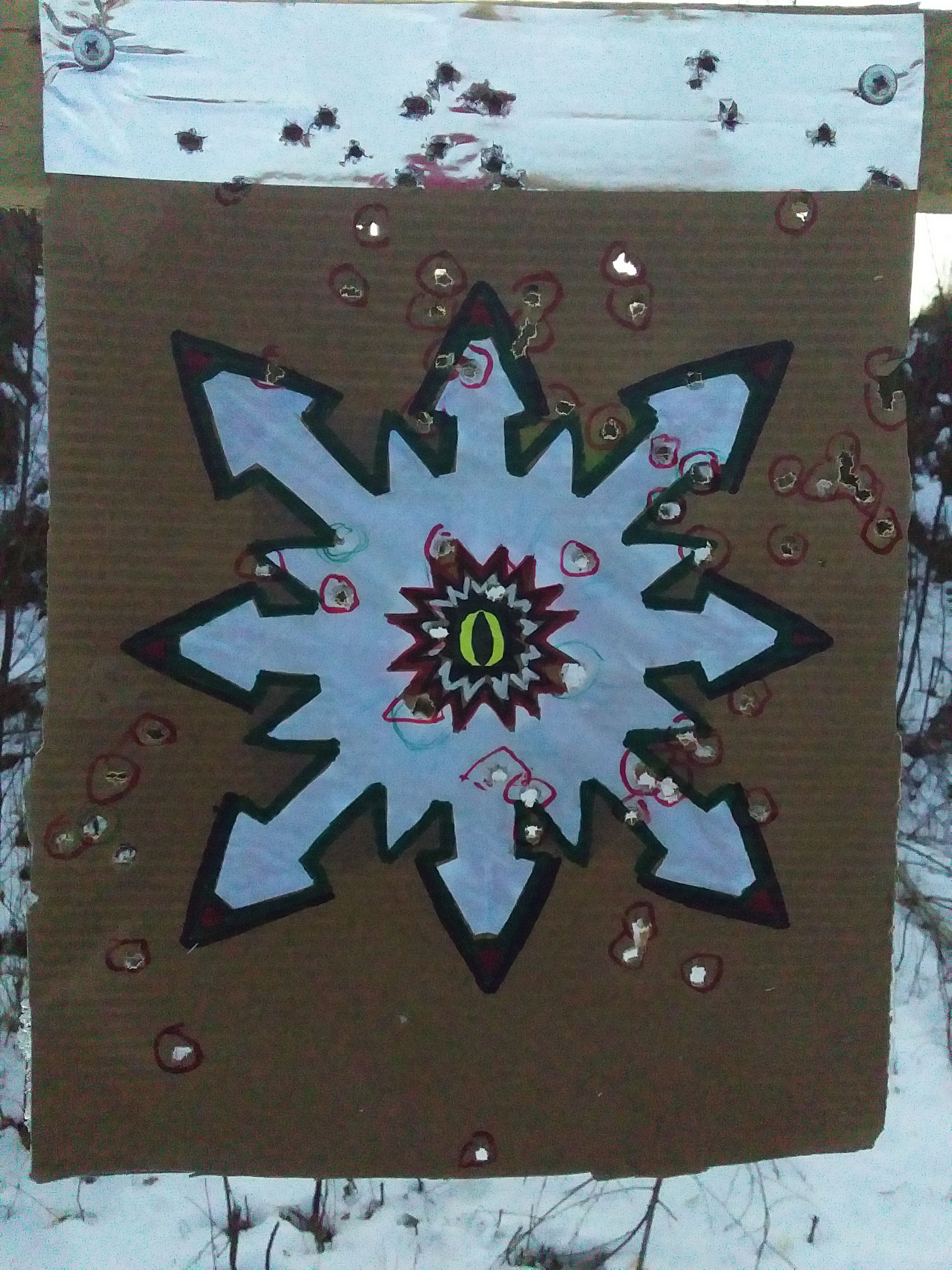 https://www.youtube.com/watch?v=mFVndjiNmaY Посмотрел видео с десятикратной чемпионкой мира, увидел что и она порой промахивается на небольшом расстоянии и даже как-то порадовался. Значит и я, когда порой стреляю не очень хорошо, имею право на ошибку. А то бывает промажу во что-то а потом переживаю весь день. 5 дырок, первая у бороды мимо, 4 в морде. Остальные не мои. И что-то как-то неловко было на это смотреть. А теперь вроде как и нормально...