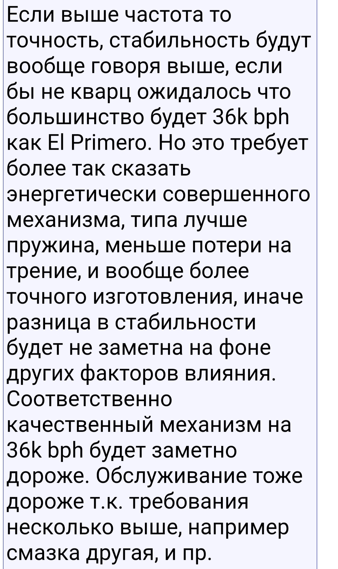 Вообще раньше предполагалось, что частота будет постоянно повышаться с развитием часов, но наткнулись на технологические проблемы, необходимость специальных смазок и т.д.