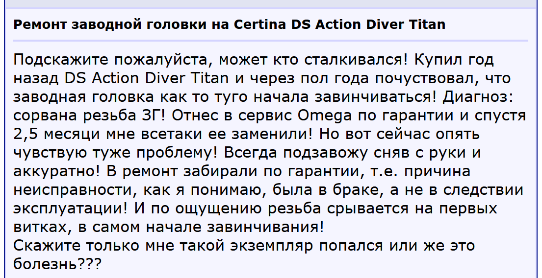 А отваливающаяся накладка на безель (у меня крашеный алюминий) при первом заходе (не нырянии) в бассейн??? Оказывается, всего лишь клей рассохся. Клей, Карл. Рассохся! На швейцарских дайверах. Производителю писал, но в ответ лишь развели руками, мол: "гарантийный год уже прошел, ничего прокомментировать не можем". Видимо для них это уже норма. Вот это я понимаю, уровень!
