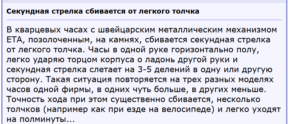 >>1862451 >Я не знаю, как надо кварц изнасиловать, чтобы он себя так вёл. Тоже не представляю. Секундная стрелка жёстко связана с минутной и часовой, её не провернуть. А швейцары смогли. Мастера хуиты.