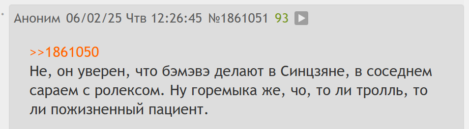 >>1862222 >ценой хорошей жизни является необходимость раз в пару недель подкручивать стрелки Ну так походу так оно и есть. Вон дидун стрелки не крутит, они у него сами крутятся, а живёт он как лох, чмо и псина, и с мобилкой не может разобраться, хотя чёто про прогресс каждый раз пиздит. А чел с сертиной на тесле ездит и с теслы же постит на сосаку. Правда походу эта аксиома не применима к владельцу какилогиров, он живёт в вечной тряске, а это хорошей жизнью назвать точно нельзя.
