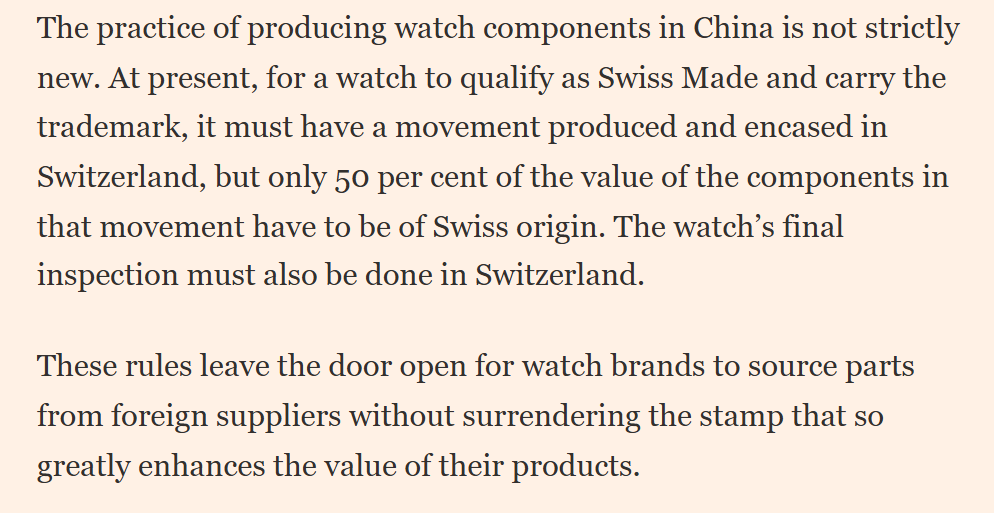 Друзья, я пришёл в этот тред для того, чтобы разобраться, действительно ли швейцарские часы или части швейцарских часов не производятся в Швейцарии, а производятся за пределами этой страны. Я спросил, будут ли какие-то доказательства того, что Швейцарцы так делают.