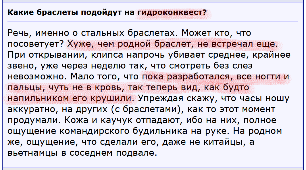 Кстати, там есть любопытная фраза, цитирую, "просто... не хотелось, сразу после покупки.. сами понимаете" - кто-то понимает, почему статусный господинчик не хотел пердолить браслет сразу после покупки? Может разъебанные пальцы сильно болели, ждал пока заживут?