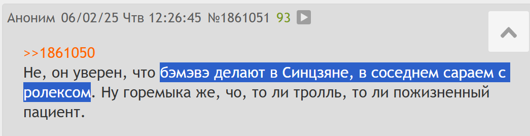 >>1866774 >Тут месяц назад анон с сертиной похвастался покупкой теслы, от чего у горемыки и дидуна произошёл разрыв седалища, и теперь горемыка уже месяц с разорванной жопой ищет везде "лоха на сертине". А лох он потому, что горемычный мозг с целью дэмэдж контрола решил, что тесла не его, а каршер взятый на микрозайм (!). >Попутно выяснилось много интересных подробностей о прогрессивности дидуна. Например, он совершенно не умеет пользоваться смартфонами, боится, что при использовании телефона на улице его собьют агрессивные зумеры.