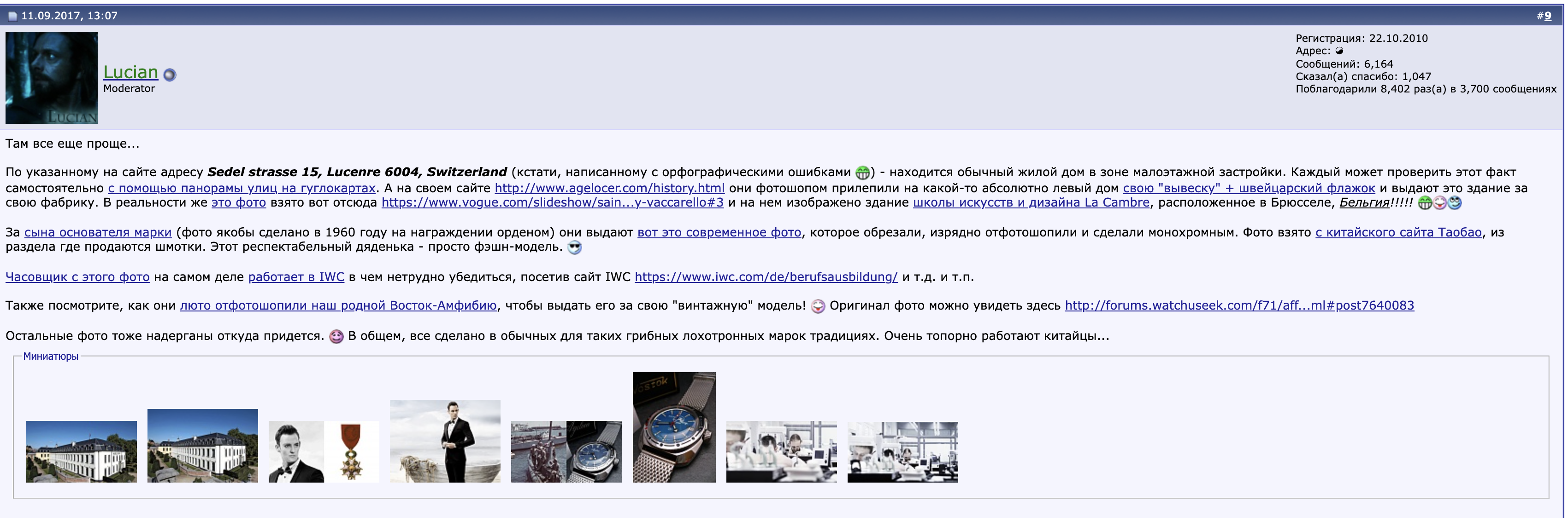 >>1870944 Это всего лишь выжимка. На китайских новостниках можно найти полную версию истории бренда Agelocer. Вот, например Мэркизи (в оригинале Maerqisi, лол) Мюллер, отец того самого легендарного Барона Юса Мюллера, по совместительству основатель бренда. На втором пике у нас первый швейцарский кварцевый бюджетный механизм, стоивший всего 150 франков. Какой уж там Сейко Астрон и Лонжин Бета 21? Всё Агелокер сделал, во. А на третьем пике никакой не фирменный ролексовский спуск Chronergy, а патентованная технология Агелокера, который к 1988-му был важнейшим (!) игроком на рынке часов среди швейцарцев. Ну и откровения о том, что Гитлер был так восхищён агелокерами, что ради этого планировал операцию Танненбаум исключительно ради овладевания заводом в Люцерне, дабы производить агелокеры для Вермахта. Обошлось без захвата Швейцарии, но делать для немчуры заставили. Что здесь правда, а что ложь - решайте сами. Думаю всё итак очевидно.