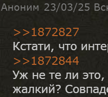 >>1873304 Если серьёзно, я не знаю, чем должно мотивироваться существо, которое сохраняет фоточки из часотреда, наверняка сортирует их по папочкам, разглядывает и снова постит в тред спустя месяцы или даже годы. Это кринж какой-то, в самом деле.