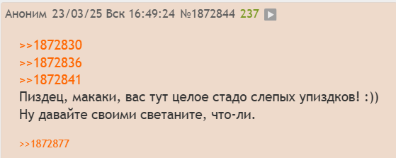 >>1873422 >Предъява IQ уровня комнатной температуры конечно. Вот именно, у тебя уже вторая такая же.