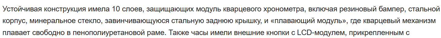 >>1873151 >с антиударной технологией Нет никакой антиударной технологии дебилы. Есть модуль на батарейке, где нечему ломаться. И если его прикрутить в пластиковый корпус, то ты его физически заебешься ломать. И это не заслуга касии, а просто физика. А если еще убрать и злабое звено(стрелки), то там вообще ломаться нечему. Будильник электронный совковый возьми, которому лет 40 на батарейке, обматай его куском резины и он будет такой же живучий. Хоть с потолка на пол его кинь и нихуя не будет. Причем тут сасия?