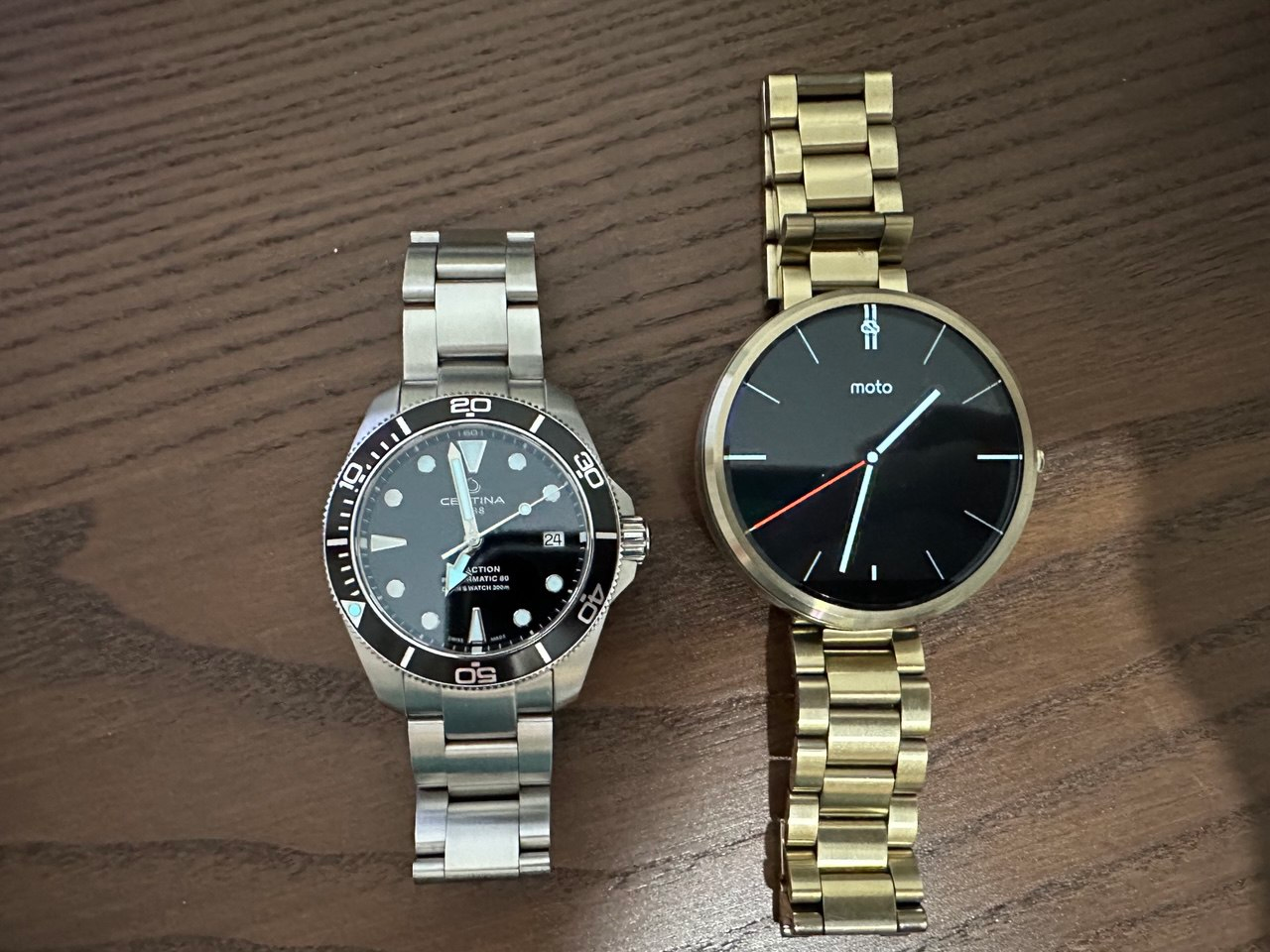 Что я могу сказать? Базель отваливается, это чудо что я его не потерял. Браслет порвался, об воду во время купания в бассейне. Звенья браслета перетираются друг от друга, давая металлический порошок, намочи руки, во время мытья например, и все вокруг будет зафаршмачено серой жижей из воды и металлического порошка. Двойная застёжка болтается и не держится из коробки она просто болтается, пришлось подгибать. Даты меняется путем дрочки часовой стрелки между часом 21 и 24, необычно, не прикольно. Пока подводишь время секундную стрелку пидррасит туда сюда в секторе до четверти круга, безобидно, но всрато. Орг. стекло ожидаемо все в царапинах, мне тут сказали, что я только выйграл, ведь можно шлифануть.