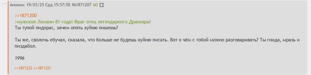 >Могу только извиниться за то, что перепутал даты. 87, а не 81. Даты путают тогда, когда их знают. Ты не знаешь. Опять же, впитал как губка, перепутал, в голове сложилось, что ломани шёл раньше. Почему так - загадка, ведь никто никогда не говорил о том, что ломани был раньше драккара. Поэтому тебя все считают тупорылым уёбищем, которое должно съебаться из треда.