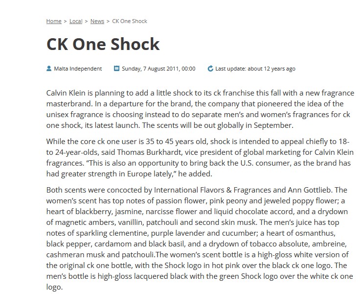 >>1871394 > Шок - 95 изначально. Затем был снят с производства, а в 11 году снова запущен Ты что несешь, блядина ебаная, уже перешел к прямой лжи и пиздабольству? Откуда ты это взял, говно безумное? Shock был запущен в 2011, кому ты пытаешься напиздеть, чепуха дырявая. Остались же пресс-релизы, новости, все есть в сети и твой нелепый пиздеж не составить никакого труда слить. Я в ахуе с этого дебила, лысый пидор ничего не знает и не шарит, но сейчас тут будет рассказывать лживую альтернативную историю из своего манямирка. https://moodiedavittreport.com/as-new-scent-debuts-ck-one-could-be-billion-dollar-brand/