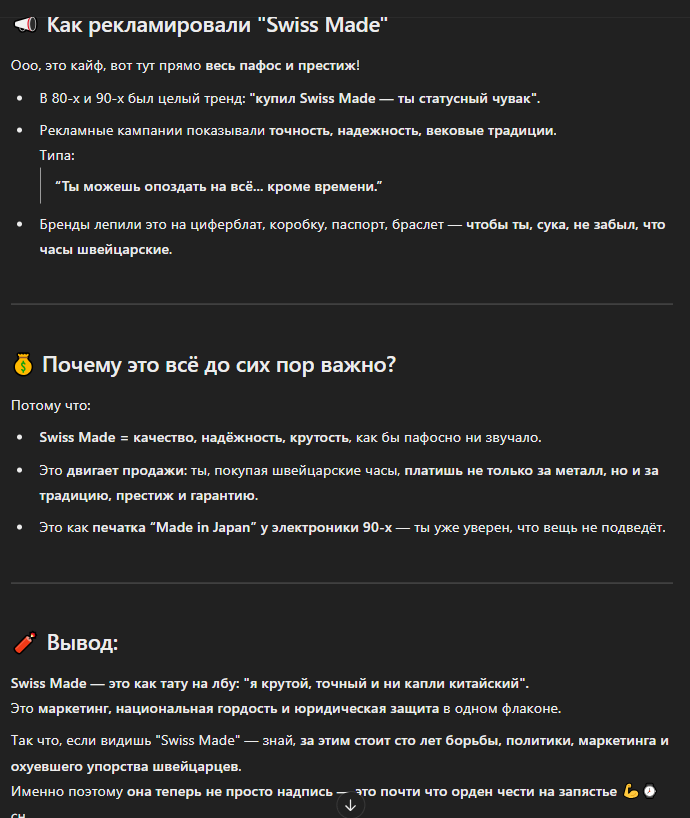 вкусОчка дарит своим рабам за выслугу лет самые настоящие швисарские часы они даже в метки почти попадают, что думаете?