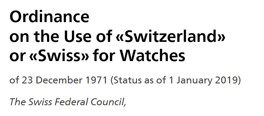 В законе написано, что для маркировки используется и swiss и Switzerland. Это макая же маркировка, как на адриатике. Тщательнее ищи и не позорься больше.