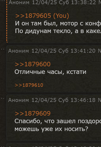 >>1879430 >В итоге ролох постепенно становится маркером идиота и человека с плохим вкусом. В этом треде за последние три года мелькало двое владельцев ролехов, ребятки весьма адекватные и довольно недолго сидевшие в треде из-за горемычной клоунады. Не могу сказать, что они идиоты и люди с дурным вкусом. Чего не скажешь о владельцах турбийонов с алиэкспресса и прогрессивных касио с синхрой - более неадекватных уебанов на всей сосаке подыскать надо, наверное только в каком-нибудь /a/ или /s/ времён спермофорса бывали такие. >По комментам на Ютубе к тому же сан Мартину это тоже заметно. Есть одна проблема. Пока ЦА Дэна Гетата скачет с визгами о превосходстве сан-мартина над ролексом, Дэнчик предпочитает носить самые дешманские тюдоры, но никак не сан-мартина или любой другой продукт, который он рекламит. И так не только с ним, вот взять например Тедди Бальдассаре, Нико Леонарда или ещё какого-нибудь блохера - они будут тебе рассказывать про то, какая сасия или берни крутые котлы, но предпочтут швиссов, или на крайняк ГС. Вот и всё.