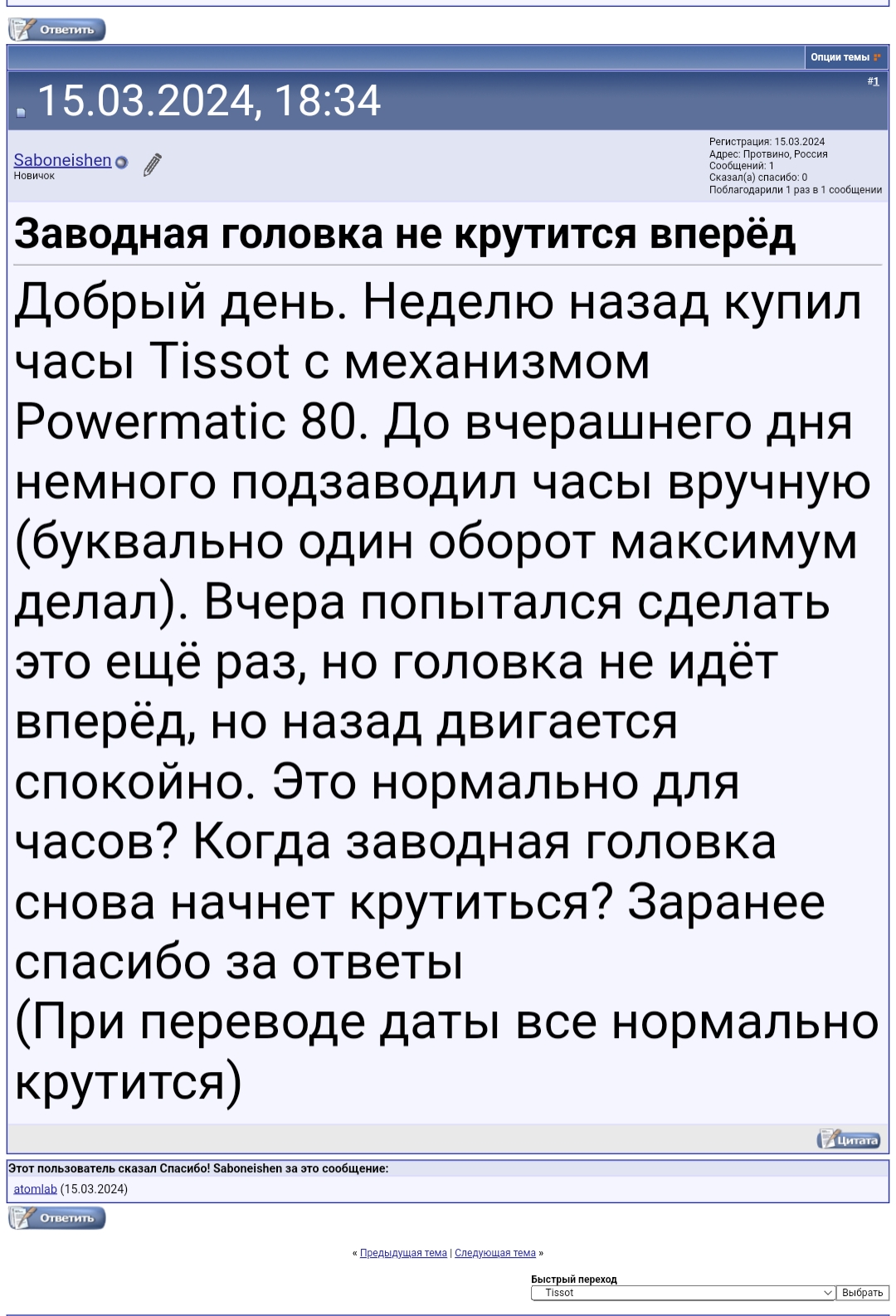 >>1879927 На него уже ответил этот >>1879929 господинчик - и замечательно ответил. Проблемы, говорит, с мозгом у владельцев swiss made, когда они такое говорят.