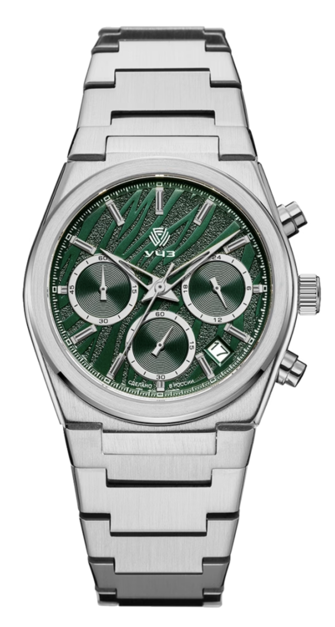 Хронограф – самая популярная дополнительная функция в часах, измеряет короткие промежутки времени. Центральная секундная стрелка превращается в секундомер, а обычная секундная стрелка прячется в одном из маленьких счетчиков. Подробнее о счетчиках расскажем чуть позже.