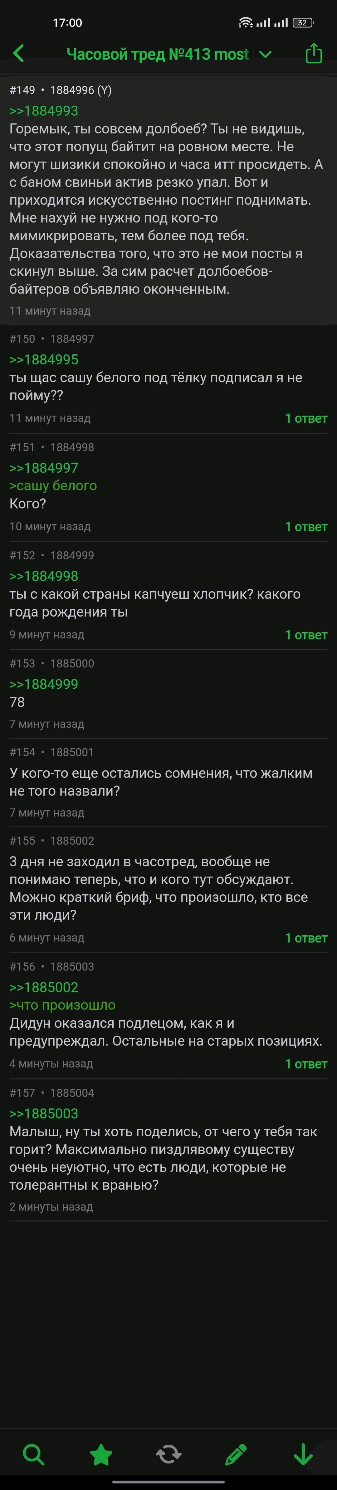 >>1884826 Молодец, Сынок. Правильные вещи говоришь! похлопывает по плечу и предлагает виски Но маленький нюанс. Форс начал именно сам Ион в припадке болезненного эксгибиционизма. А К-маныч и шайка хейтеров И. только поддержали его из своей ненависти к чадному бородачу. Когда поняли, что Ивановцы их разоблачили и дело швах - бросили активный форс, а сам Ион куда-то пропал - видимо, дрочил на камеру. И вот теперь под личиной Свинофила объявился в Часотреде.