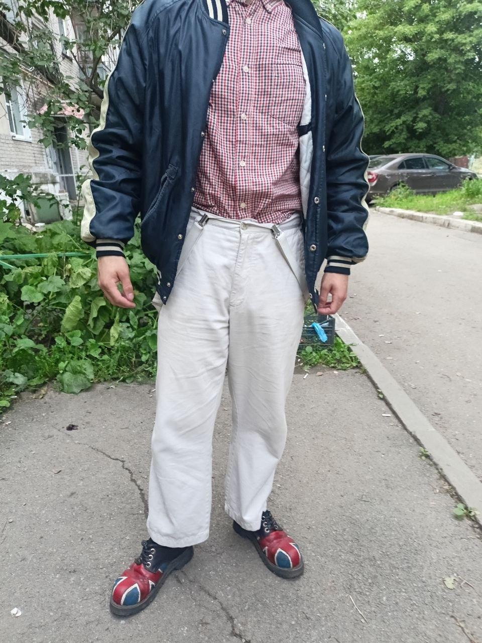 Штаны и так сомнительные, но их можно было бы вытащить более массивной обувью и получилось бы отлично. А с этими маржелами ты выглядишь как веселый человечек из советских мультиков. Особенно с этим причесоном, взгляни на отражение в лифте.