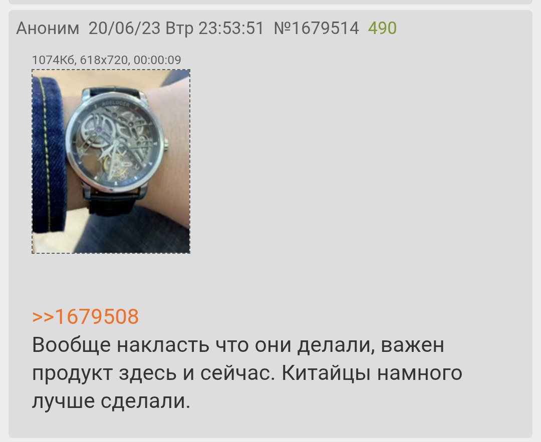 >>1890906 А про часов больше нет вопросов? Мы итт заводы что ли запускаем? Если тебе хочется на личности, то к дидуну перейди, он любит похвастать, даже фотки из интернета притащит, как пруфы.
