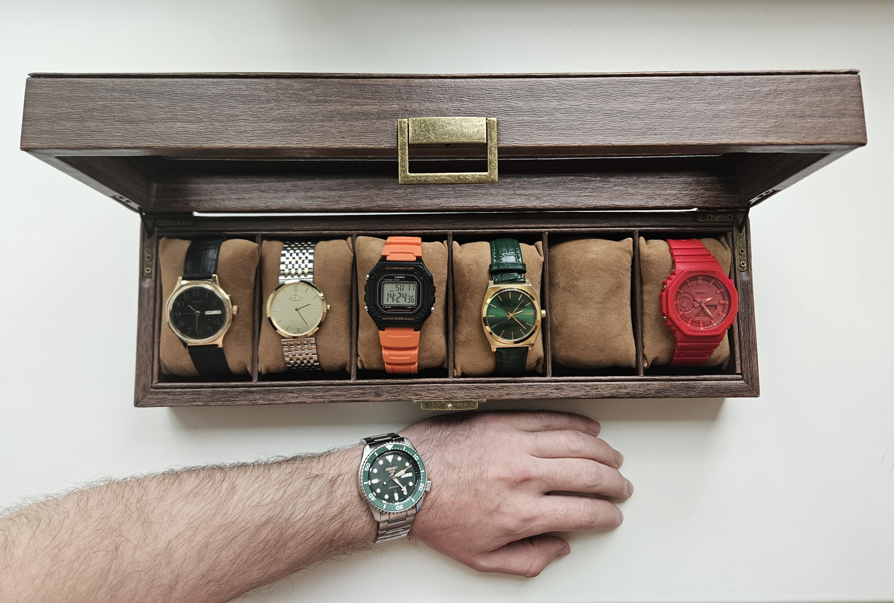 Если прям часы-часы и относительно недорого я бы в сторону японцев дайверов смотрел: ситизен, сейки, ориент. Хорошо выглядят, универсальные в плане стиля (если не под прям костюм), добротные мехи, отличная водозащита, по безелю удобно всякие макарошки засекать. Этот форм-фактор из-за практичности собственно такую популярность и завоевал. Либо какие-нибудь простые 5600 джишоки если нужен прям цифровой кварц и не совсем расходник. Или на GA-2100 ещё можно посмотреть.