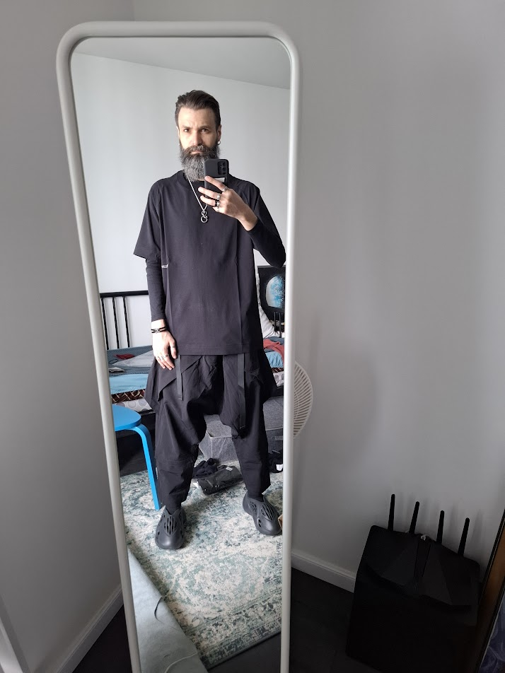 >>1922518 >Но здесь же 1922342 бородатый дядька с вероятным кризисом среднего возраста, поэтому ситуация гораздо комичнее. Плюсую. Ладно бы черные тряпки, может он в цвета не умеет, но эти кибер-галоши и всратые сумки!