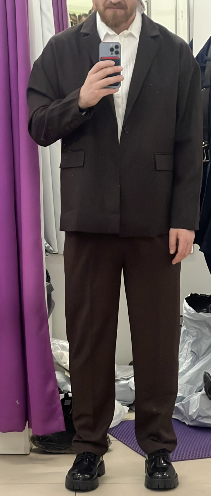 >>1946040 >>1946047 Джентльмены, но это же очевидно не классический пиджак, а новомодная вариация со спущенным плечом и коробковидной посадкой и прямыми углами бортов. Для меня лично выглядит довольно интересно, только вот с брюками по цвету не сочетается. Нужны либо контрастные (черные например), либо прямо комплектные, из той же ткани. Громоздкая обувь по концепции подходит, но сильно утяжелять силуэт, имей ввиду. Возможно стоит поискать модель с менее брутальной подошвой. мимо