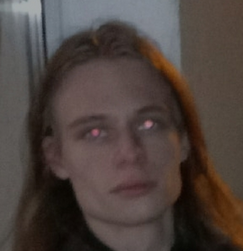 Эх. Как не оскуфеть? Скулы довольно мощные, но на них шматы сала лежат, вкупе со слабым подбородком пиздец. На щеках ещё чёрные точки, бугры какие-то, немного видны фиолетовые сетки будто от сосудов.