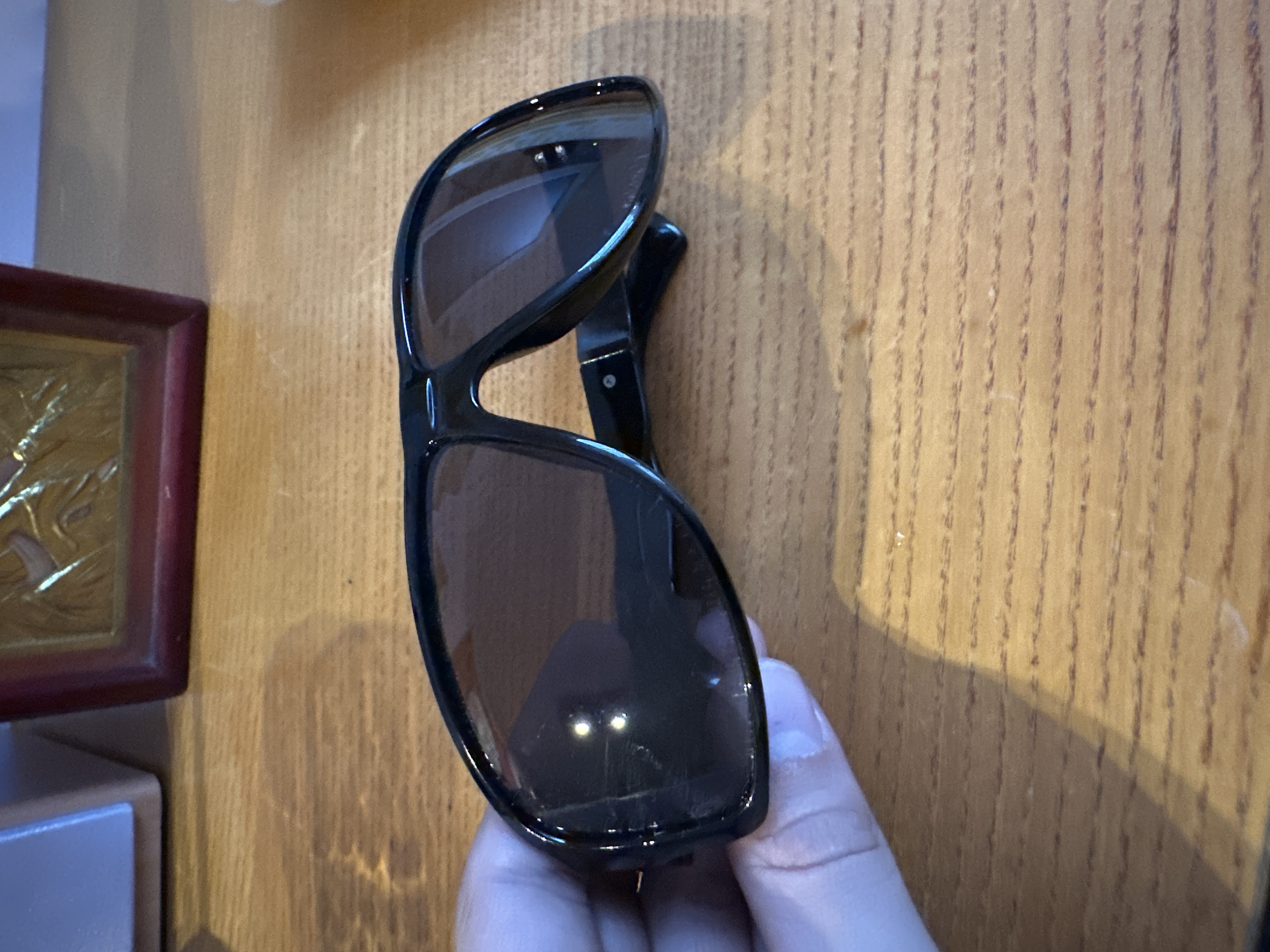 Аноны, привет. Помогите, пожалуйста, определить оригинальность очков. Фирма Ray Ban. Гравировка есть, made in Italy есть, штампа на переносице нет, чехол непонятно из кожзама или ещё чего, линзы вроде из пластика, но фильтруют хорошо. Меня смущает, что у всех моделей в интернете больше информации на левой душке, у меня только хуйня какая-то с цифрами. Алсо, за сколько можно продать?